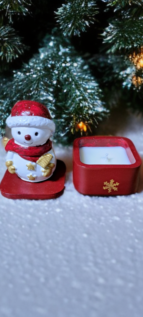 Két részes hóemberes díszdoboz illatos gyertyával – a karácsony legédesebb téli kincse.